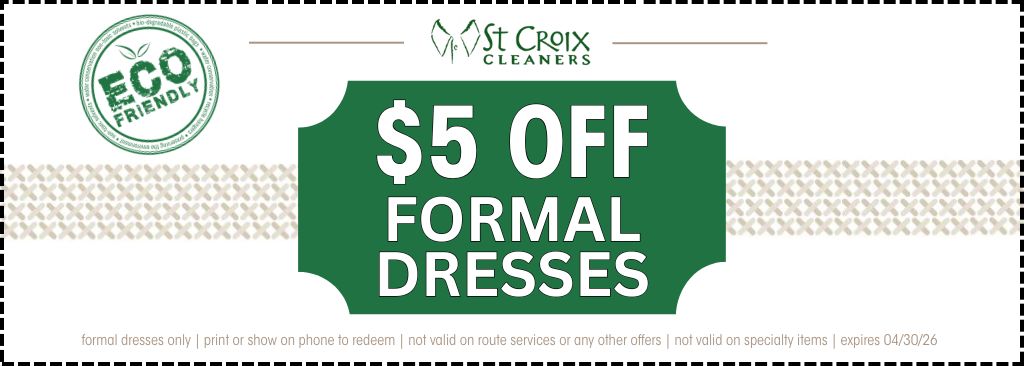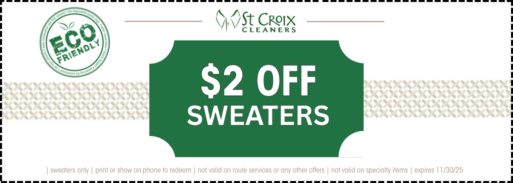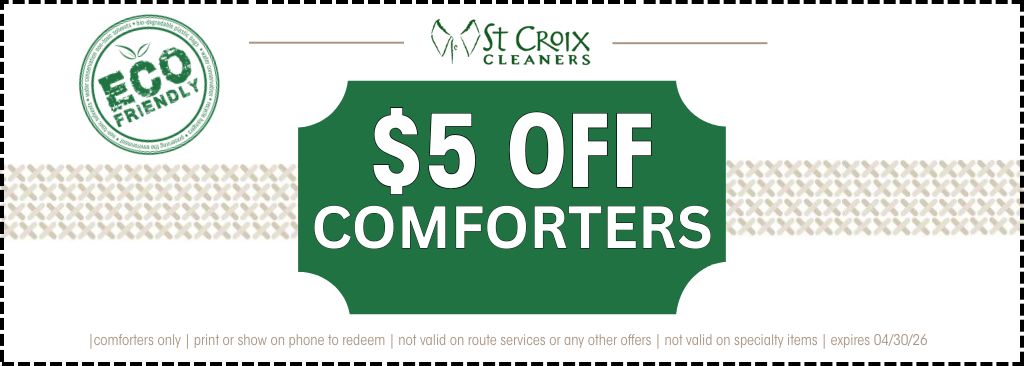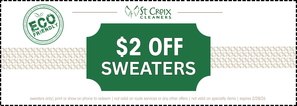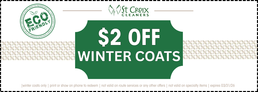 - You can have easy access to weekly coupons by simply joining our online community! Like and follow us on Facebook at /StCroixCleaners.